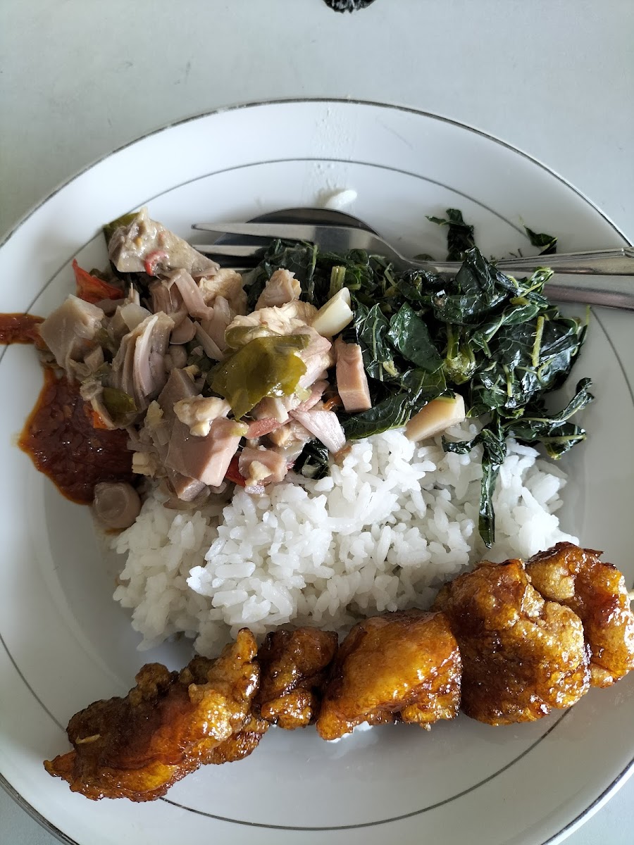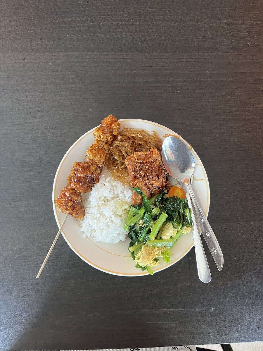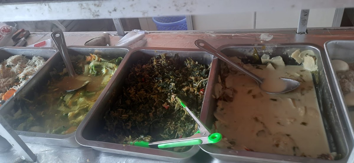 The foods were already prepared quite early in the morning You can take the amount of desired rice and veges by yourself Actually it was not that expensive for the main course But a bit too much for the side snacks provided such as snacks like pao 8k Soy milk 16k